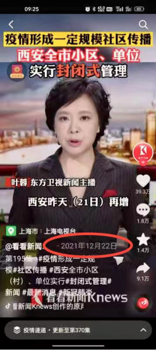 近日,部分微信群、圈中传播“23日0时起,西安全市小区、单位实行封闭式管理”。此消息为2021年12月22日抖音平台“看看新闻”发布的信息。请广大网民持续关注官方发布的信息,切勿听信小道消息,做到不信谣,不传谣。
