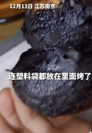 连塑料袋都放在里面一起烤了