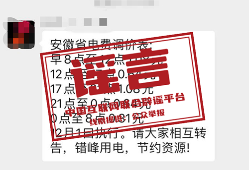 近日,一则内容为“12月1日起电费调价,早8点至12点1.08元,12点至17点0.64元,17点至21点1.08元,21点至零点0.64元,零点至早上8点0.31元”的信息在网上传播,引发关注。针对这一网传信息,安徽、浙江等多地回应:传言不实!