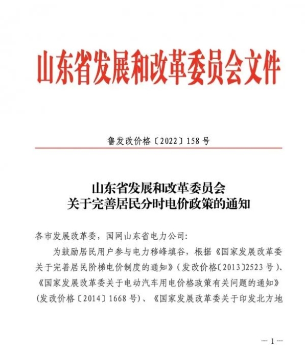 山东省发改委2022年3月2日发布《关于完善居民分时用电政策的通知》明确表示,在现行阶梯电价标准基础上,峰段电价每千瓦时提高0.03元(含税,下同);谷段电价降低0.17元。即第一档峰段电价为0.5769元、谷段电价为0.3769 元,第二、三档峰、谷电价分别在第一档峰、谷电价基础上加价0.05元、0.3元;其中采暖期谷段电价由降低0.17元调整至降低0.2元。即第一档峰段电价为0.5769元、谷段电价为0.3469元,第二、三档峰、谷电价加价标准不变。