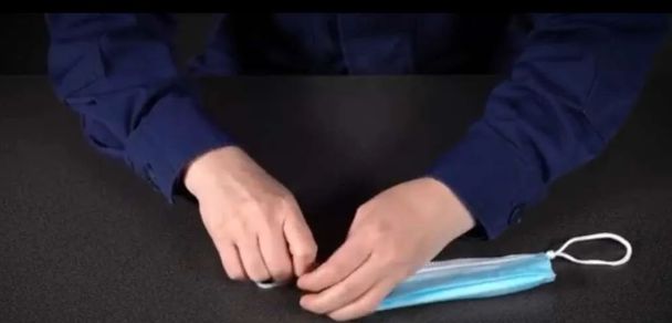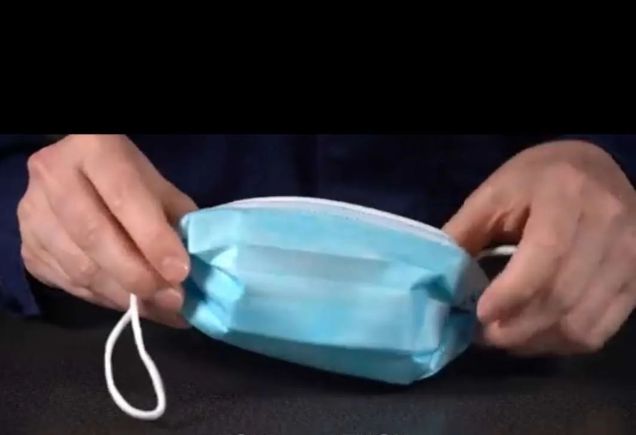 做法也很简单,将普通口罩对折系带打一个结,结尽量靠近口罩。