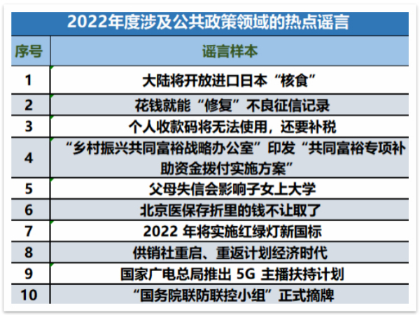 一些涉及公共政策领域的谣言或凭空杜撰,或假冒官方,传递虚假信息,扰乱正常公共秩序。