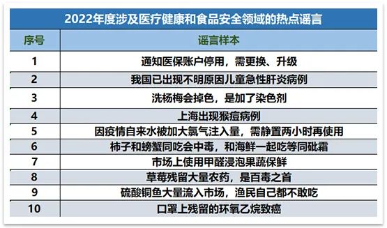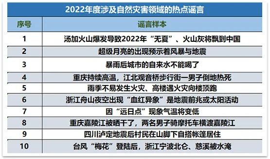 2022年,国际国内热点事件中,网络谣言“趁虚而入”,时有发酵,涉及疫情防控、公共政策、社会事件、医疗健康、自然现象等公众关心关切领域,可谓“套路百出”,令人深恶痛绝。针对网络谣言这一痼疾,中国互联网联合辟谣平台重拳出击,全年共受理网民谣言举报信息3万余条,汇集谣言样本和辟谣数据2.45万条,共发布各类辟谣稿件1.31万篇,推出了12期《打击网络谣言 共建清朗家园 中国互联网联合辟谣平台月度辟谣榜》、科学流言榜以及“涉防灾减灾辟谣榜”“涉化妆品辟谣榜”“涉高考高招辟谣榜”“涉食品安全辟谣榜”等行业辟谣榜单。这些谣言背后的真相您都了解了吗?中国互联网联合辟谣平台特此盘点解析,为您澄清谬误,传递事实真相。