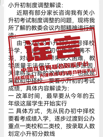 谣言:天津“小升初改革”?