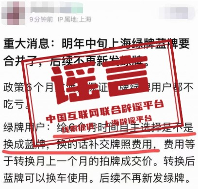 谣言:明年上海“绿牌蓝牌”要合并?