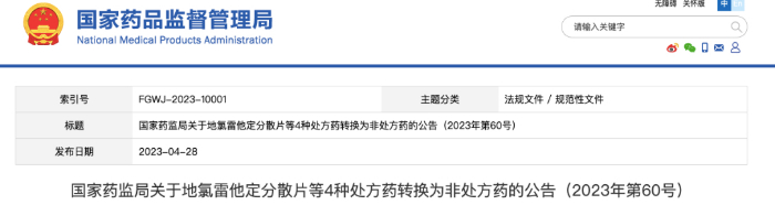 国家药监局近日发布公告:地氯雷他定分散片等4种处方药转换为非处方药。