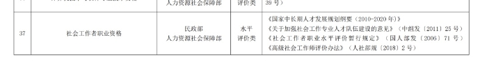 按照人社部目录,社会工作者属于水平评价类职业资格,不是准入类职业资格。