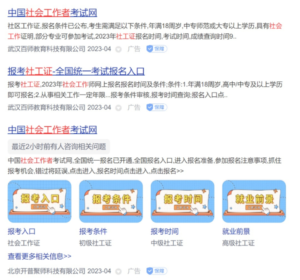 搜索“社工证”,排名靠前的全是“广告”,却自称“考试网”“统一入口”