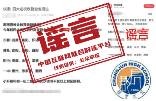 谣言:长沙“四大名校”初升高恢复全省招生?