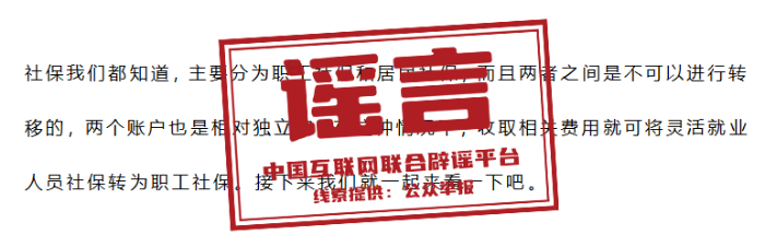 谣言:收费可将灵活就业人员社保转为职工社保?
