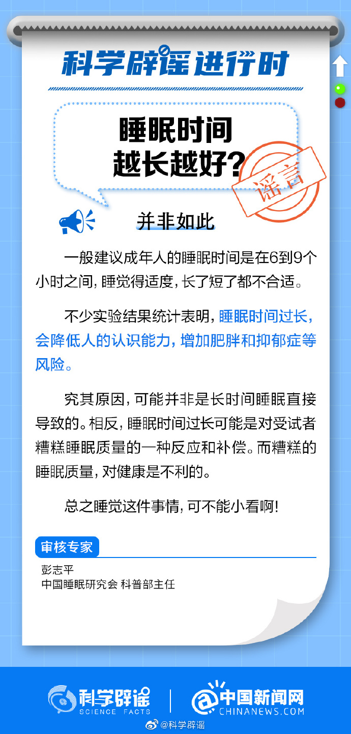 不少实验结果统计表明,睡眠时间过长会降低人的认识能力,增加肥胖和抑郁症等风险。究其原因,可能并非是长时间睡眠直接导致的。相反,睡眠时间过长可能是对受试者糟糕睡眠质量的一种反应和补偿。而糟糕的睡眠质量,对健康是不利的。