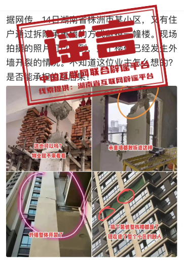 谣言:湖南株洲某楼盘装修拆除承重墙?