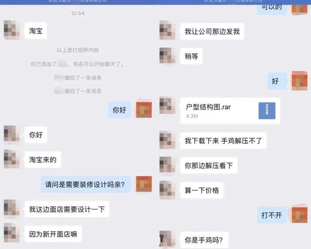 当下,线上平台成为不少商家尤其是定制类行业商户与客户沟通的手段。当你作为商家和客户成功加上微信后,客户发来声称是参考样式的压缩文件,你会点开吗?