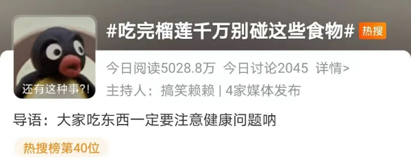 最近,榴莲逐渐大量上市,#吃完榴莲千万别碰这些食物#的话题也冲上热搜。