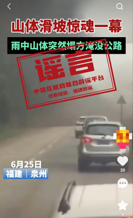 谣言:福建泉州突发山体滑坡淹没公路?