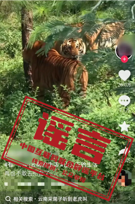 谣言:云南一男子上山拾菌遇老虎?