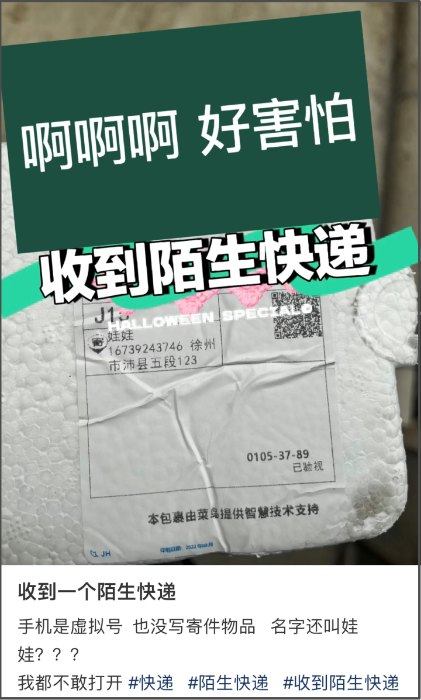 有网友发帖,称自己莫名其妙收到一个快递,是一个调料罐,上面也印着二维码。