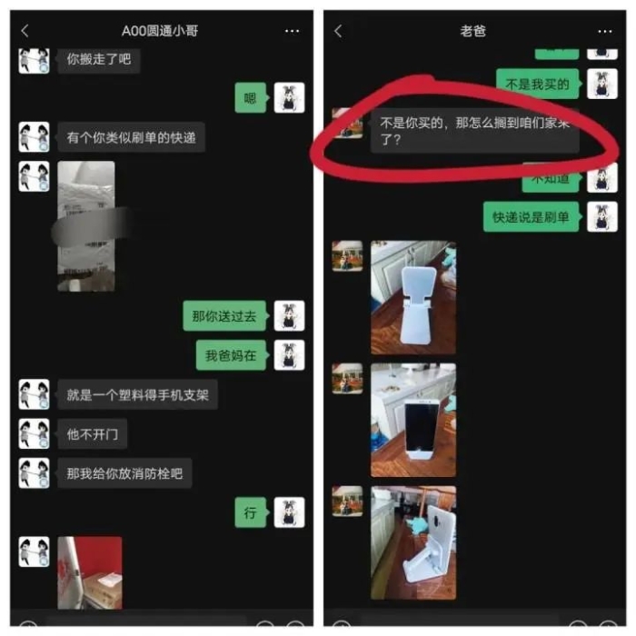 事情是这样的,这位网友收到了一个莫名其妙的快递,帮忙拆快递的网友老爸发出了灵魂拷问:“不是你买的,怎么寄咱们家来了?”
