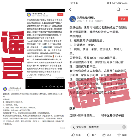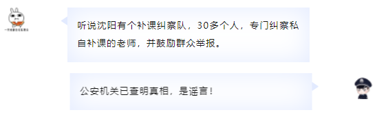 沈阳网安发现此情后,迅速与教育部门核实,确认根本不存在所谓“教育纠察队”等类似机构团体,也没有让网民举报补课等情况。