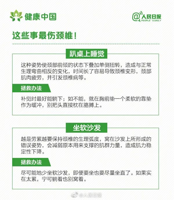 “有的人早上睡醒时,头不在枕头上、反复落枕、觉得趴睡更舒服、越睡越累或睡醒时脖子紧绷、喜欢用高的枕头等,都是因为颈部肌肉持续紧张痉挛,或出现扭伤、变形或病变引起的。”吴连国说。