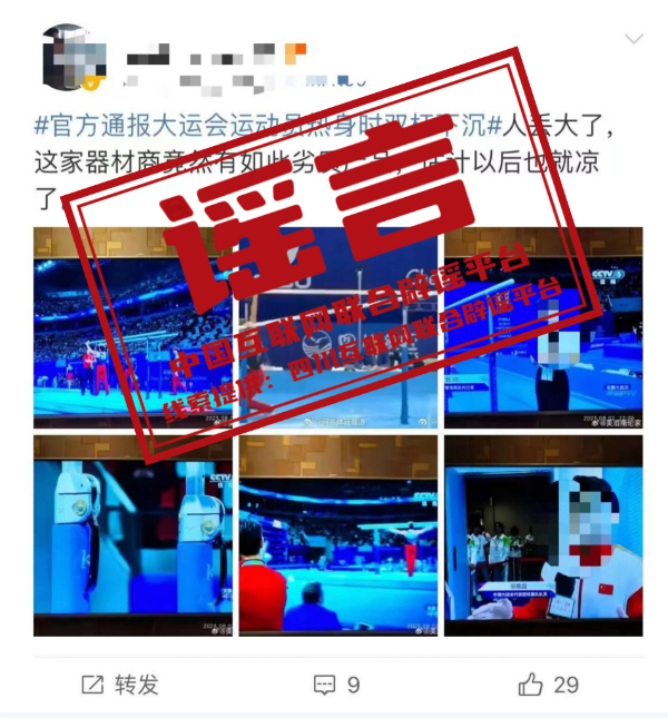 谣言:成都大运会双杠赛设施撑垮险酿事故?