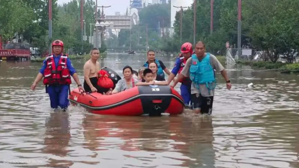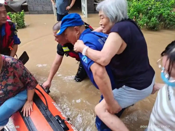 北京房山蓝天救援队在近期的暴雨灾害中救援、转移民众。受访者供图