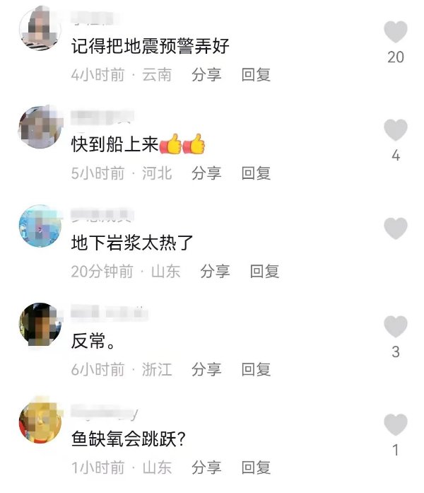 8月7日,云南省地震局联合昆明市防震减灾局、西山区防震减灾局工作人员进行了现场调查发现,鱼跃主要有两个区域,分别为海埂西码头和滇池-草海连接泵排水处,现场存在死鱼漂浮的现象,海埂西码头仍偶有鱼跃,滇池-草海连接泵排水处鱼跃现象已不明显。现场调查发现,发生鱼跃现象的两处水域狭窄,其中海埂西码头快艇进出频繁,滇池-草海连接泵排水处鱼跃时段恰值泵站向外海排水,这些影响因素可能诱发鱼群聚集缺氧而出现鱼跃现象。初步分析认为,鱼跃现象与所处区域本身的水体环境以及人为活动关系较大。
