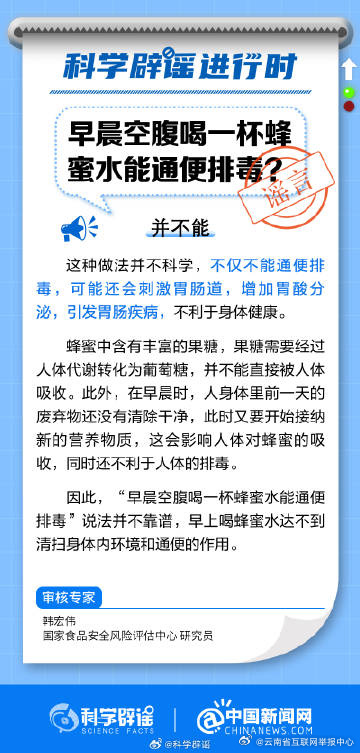 科学辟谣:早晨空腹喝蜂蜜水不能通便排毒