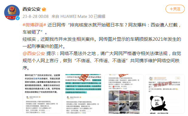近日网传“排完核废水就开始砸日本车?网友爆料:西安遭人拦截,车被砸了”。