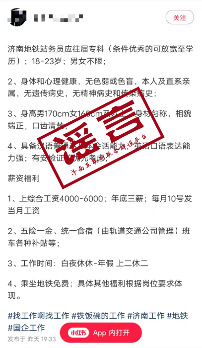 近期,一则“济南地铁招聘站务员”的信息在抖音、小红书等网络社交平台流传引发网友们的广泛关注。