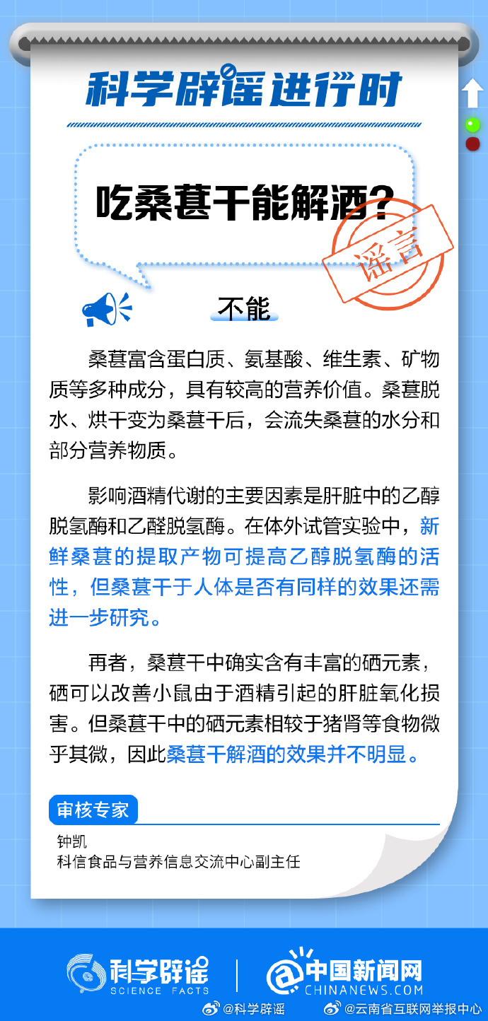 科学辟谣:吃桑葚干能解酒吗?