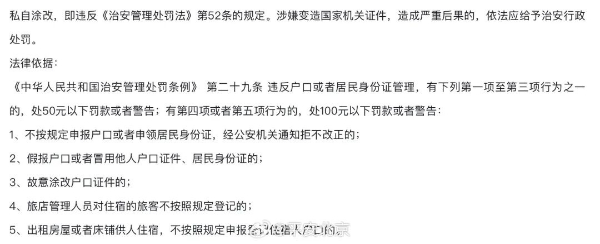 10日,@平安北京:有些人觉得好玩可能会效仿,但这种行为并不提倡。因为私自涂改户口簿情节严重的需要承担法律责任:《治安管理处罚法》第52条的规定。涉嫌变造国家机关证件,造成严重后果的,依法应给予治安行政处罚。