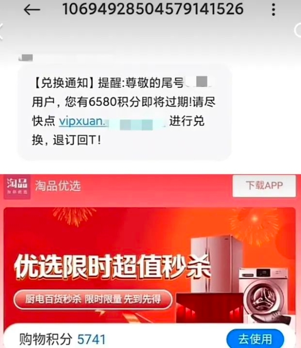 记者调查发现,此类“积分兑换”短信的套路往往是“广撒网”——商家向海量人群发送带有链接的短信,利用消费者不忍积分过期的心理,诱导其购买劣质品。