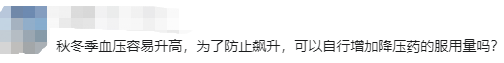近期,气温逐渐降低。天冷时节控血压,又成了不少高血压患者关心的问题。有网友问:为了更好地应对秋冬季血压上升,可以增加降压药的服用量吗?