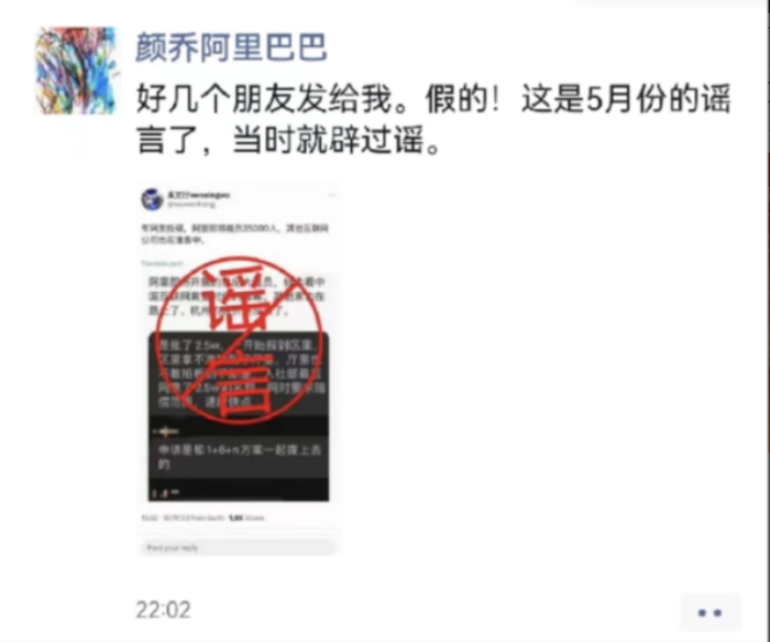 即将裁员两万五千人?阿里辟谣