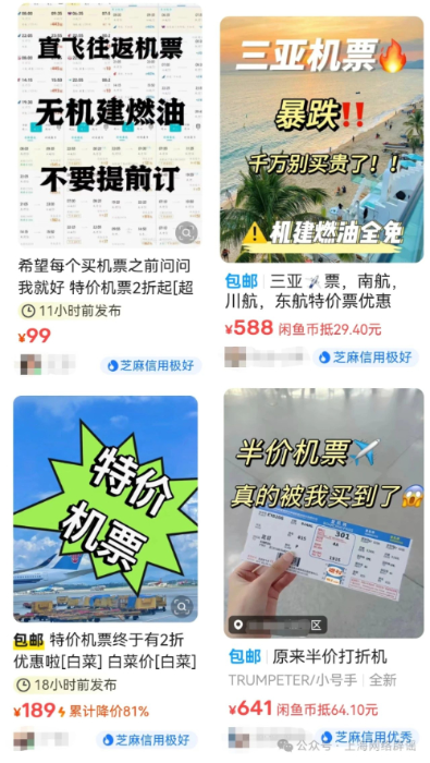二手交易平台上出现了大量售卖“超低价机票”的代理。