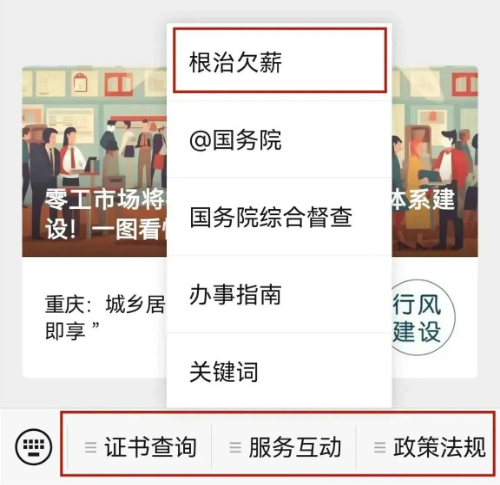 在“服务互动”栏目中选择“根治欠薪”