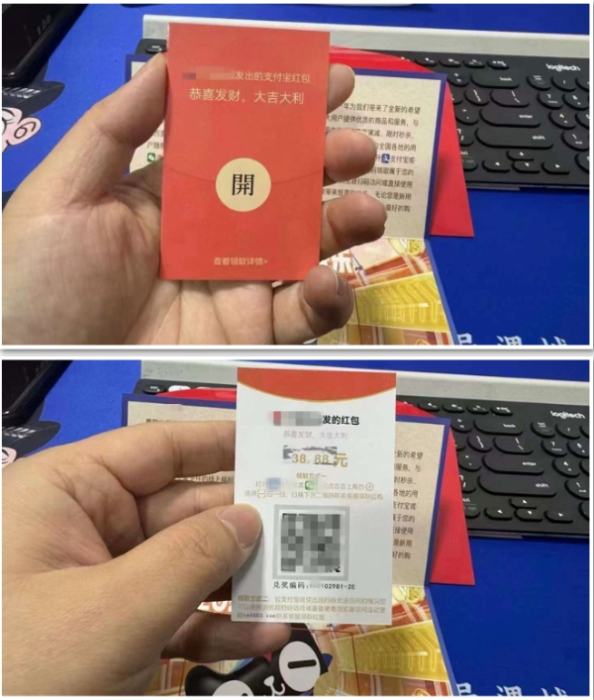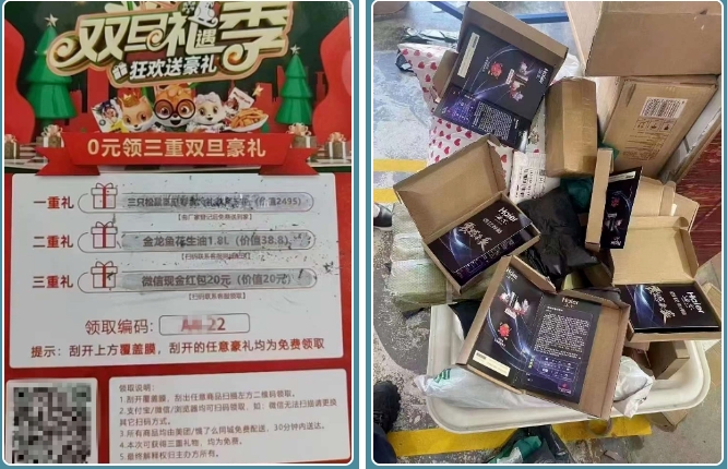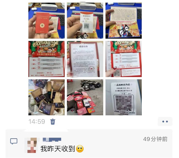 快递内有一张卡片,注明扫描卡片上的二维码即可领取平台派发的红包或礼品。