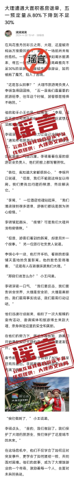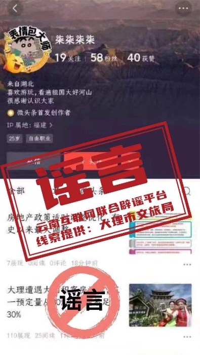 在此,大理市文化和旅游局提醒广大网友,不造谣、不信谣、不传谣。