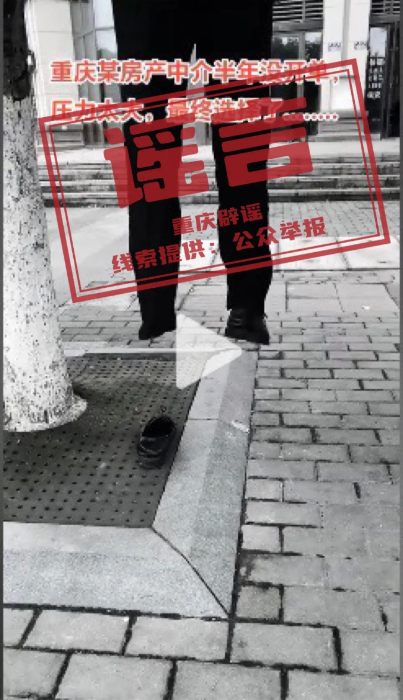 五一假期期间,重庆渝北网民王某在某短视频平台发布信息,称“某房产中介员工半年没开单压力大,上吊自杀”。经核查,网传信息系谣言。