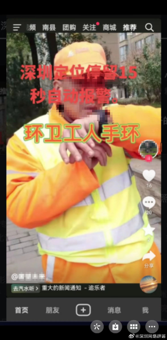 近日,网传“深圳环卫工人佩戴的定位手环停留15秒后将自动报警”,记者从深圳市城市管理和综合执法局了解到,该情况不属实。传言中图片是2022年4月11日上传的定位手环功能介绍视频的视频封面,于近日被添加了“深圳定位停留15秒自动报警”文字并上传至新媒体平台传播,对深圳环卫行业造成不良社会影响。