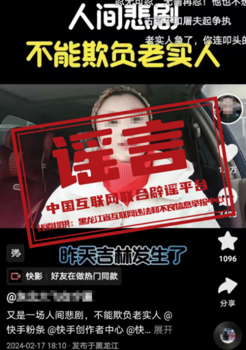 真相:近日,有网民在某视频平台发布视频称:“吉林省发生了一起刑事案件,有一名55岁的屠夫,因为土地矛盾纠纷问题,手持杀猪刀杀害了12个人,屠夫在逃亡途中跑到山林里被警方抓获。”该视频内容短时间内引起公众大量关注和讨论。经警方调查发现,视频中所称案发地并未发生此类案件,这则消息纯属子虚乌有,系黑龙江大庆网民吕某为了博取关注、吸引流量而编造发布的谣言。目前,大庆市公安机关已依据相关法律法规对吕某给予行政处罚。(来源:大庆市委网信办)