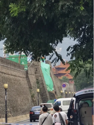 现场施工人员介绍,城墙上缺失的砖块是由于风化、白蚁侵蚀等原因导致墙砖老化,“我们正在修缮,是人工扒的,不是墙塌了。”