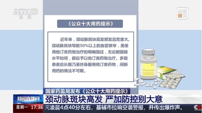 近年来,颈动脉斑块高发频发且危害大。颈动脉斑块导致50%以上的血管狭窄,是使用他汀类药物治疗的明确指征,无论胆固醇水平如何,都应予以他汀类药物治疗。多数患者应长期乃至终身服用他汀类药物,间断用药的做法不可取。