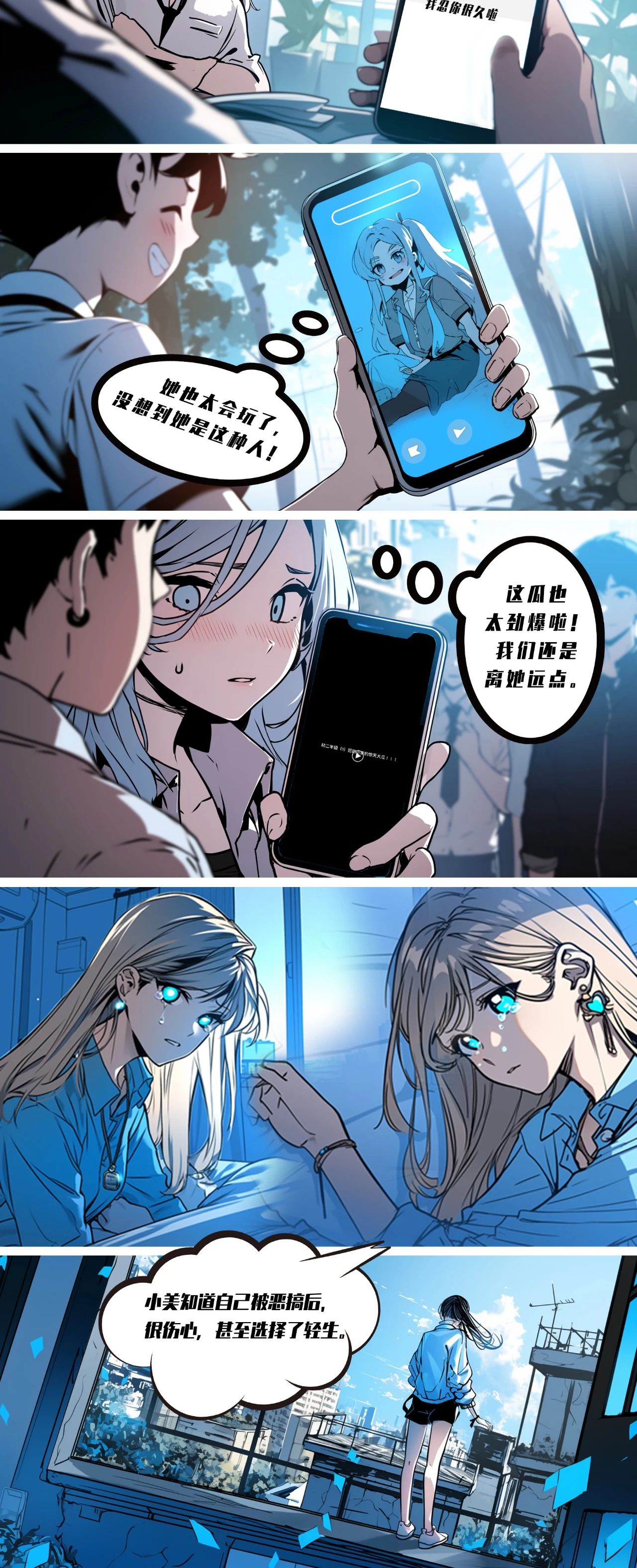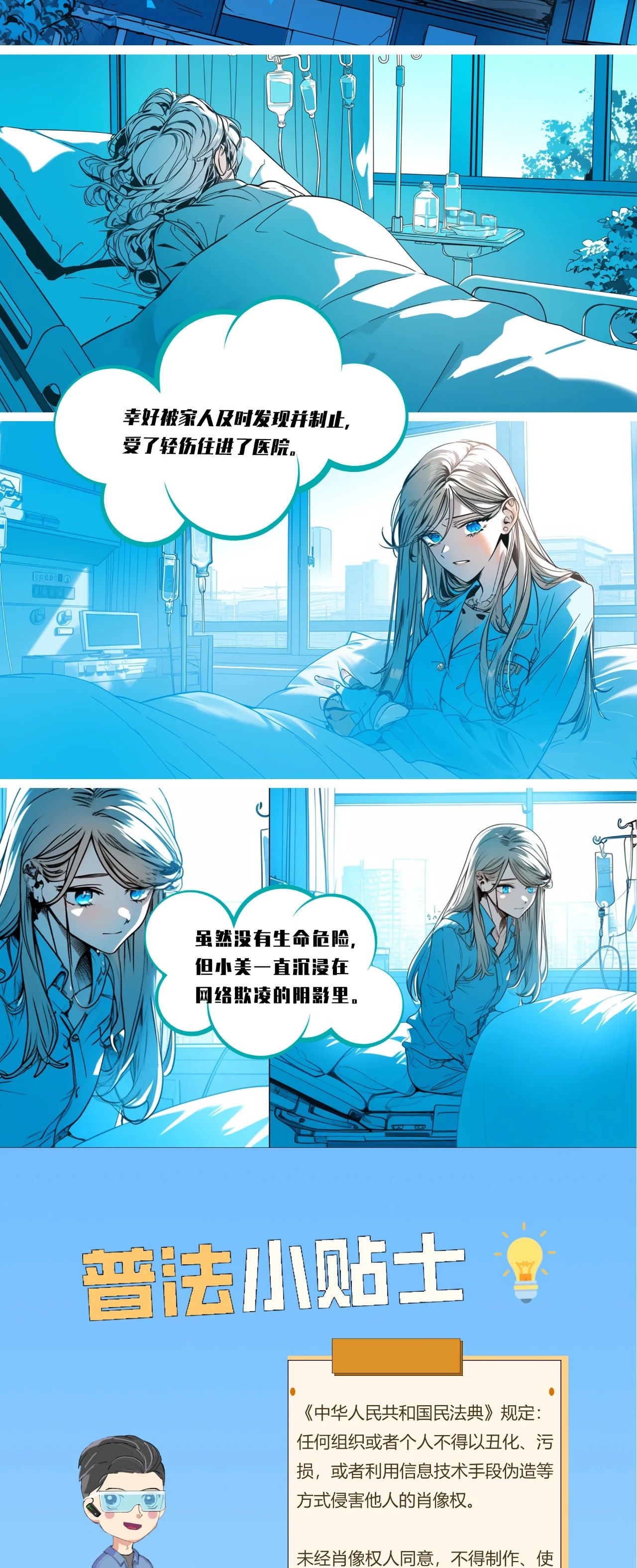 任何组织和个人不得通过网络以文字、图片、音视频等形式,对未成年人实施侮辱、诽谤、威胁或者恶意损害形象等网络欺凌行为。今天,昆明信息港推出《争做网络法律明白人·云南网络普法漫画》第6期:拒绝网络欺凌,对“指尖上的暴力”说不!