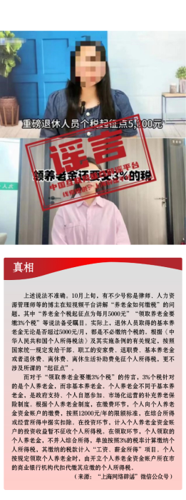 假冒官方虚构政策。一些不法分子冒充权威机构,散布涉公共政策类谣言,误导公众认知。有的假借官方名义,伪造政策文件,实则行骗牟利,侵犯群众利益。如有人利用公众对“大数据”“数字经济”等内容的认知盲区,假借“国家数据局”“中国人民银行数字货币研究所”等官方名义,伪造政策文件,谣称“国家数据局颁发‘个人数据资产拥有权确权凭证’”“数字人民币平台将发放‘数字资产红利’”,相关部门均已发布辟谣声明。有的从公开发布的政策信息中摘取碎片化信息,断章取义,对政策歪曲解读。如个别自媒体故意混淆“个人养老金”与“基本养老金”的概念,传播“领取养老金要缴3%个税”“养老金个税起征点为5000元”等不实信息,引发公众误解。另有“成都、合肥等地免费送公交地铁卡”谣言,以“免费”“赠送”为噱头,诱导用户关注、分享,最终可能导致用户遭受个人信息泄露或其他不法侵害。