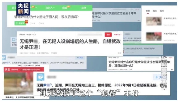 民警介绍,章某将自己与尹女士的私密聊天记录,隐私照片、视频发布上网,把尹女士描绘成小三上位,再以他妻子的名义发出来,控诉尹女士,博取同情。