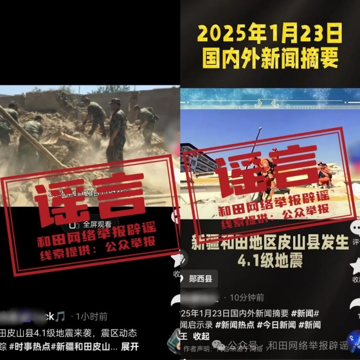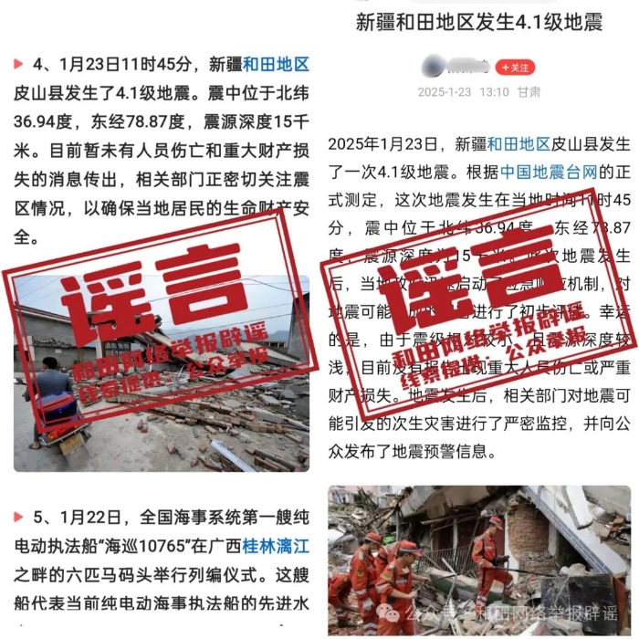 来源: “新疆网络辟谣”微信公众号、“和田网络举报辟谣”微信公众号 日期:2025-01-24