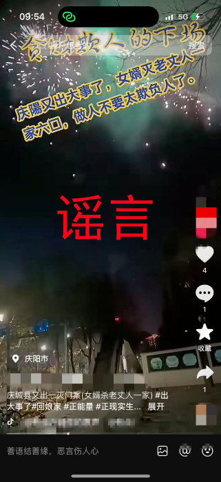 近期,一网民在某平台发布谣言信息,称甘肃省庆阳市庆城县发生一起灭门刑事案件,随后该谣言信息在网上被多次转发,引发网民关注,造成不良社会影响。